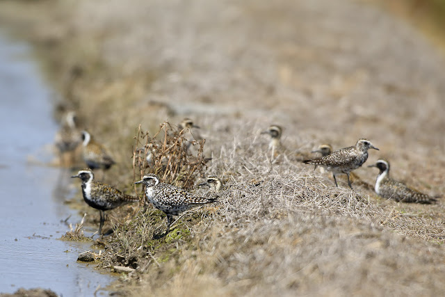 畦道でお休み中、12羽の群れ。